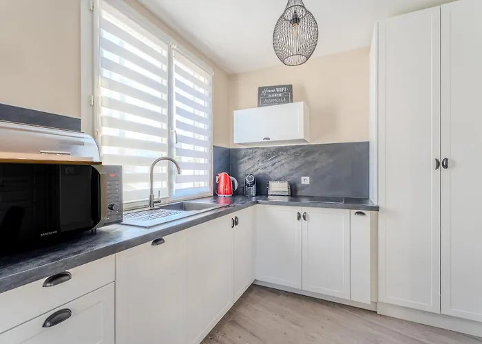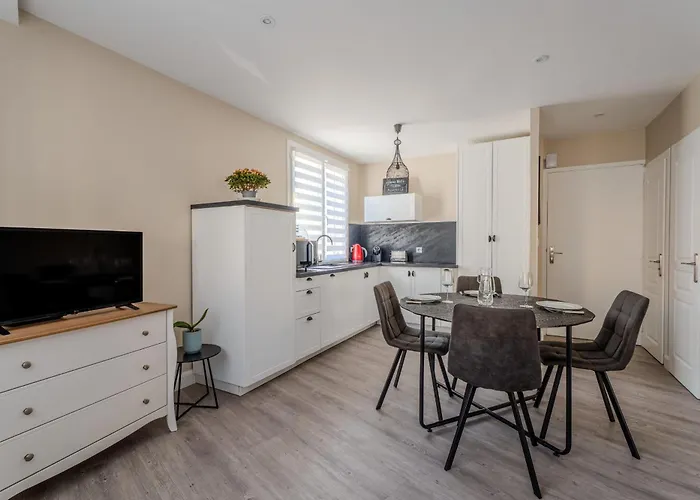 公寓距离皮辛杜赫雷有25分钟的步行路程,距离Eglise Saint-Pierre有5分钟的步行路程,都在住宿场所旁边. Le Sloop提供现代风格菜,走路只需5分钟. 从公寓出发,即可轻松抵达Promenade du Remblai和莱萨布勒-多洛讷.